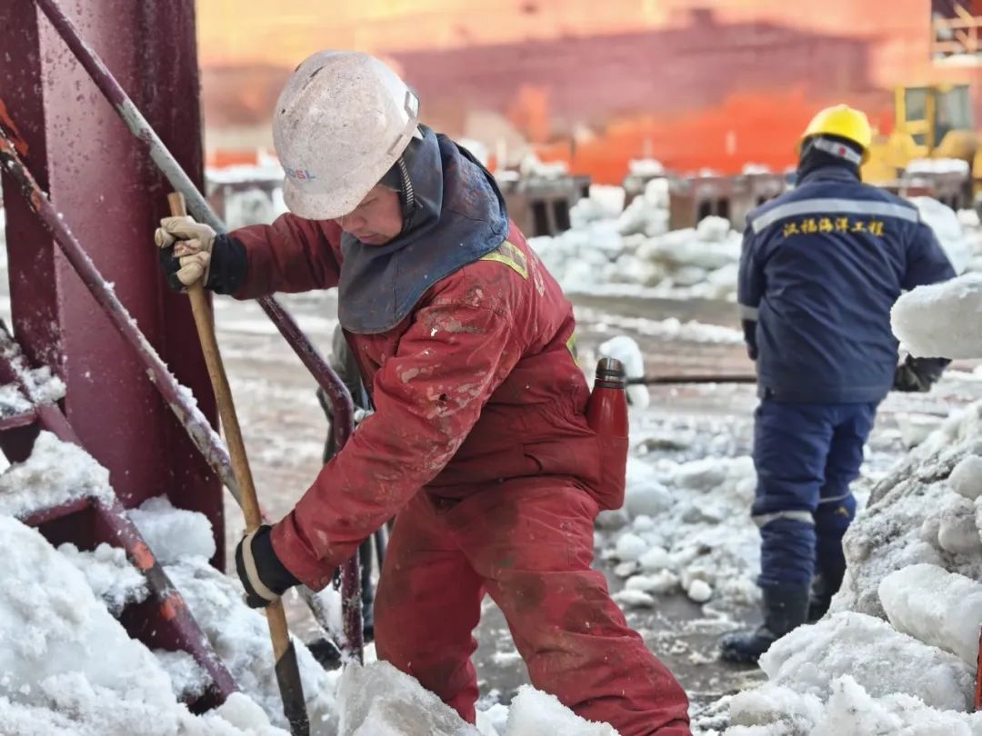 漢福海洋工程開展船塢除冰作業(yè)